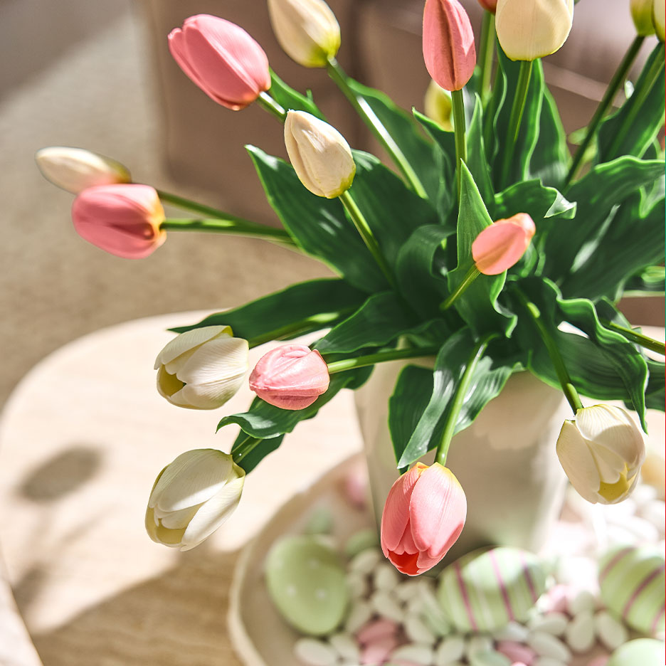 - Flores "Real Touch": Não tiveste tempo de ir à florista? As tulipas artificiais com efeito "real touch" são quase impossíveis de distinguir das verdadeiras!