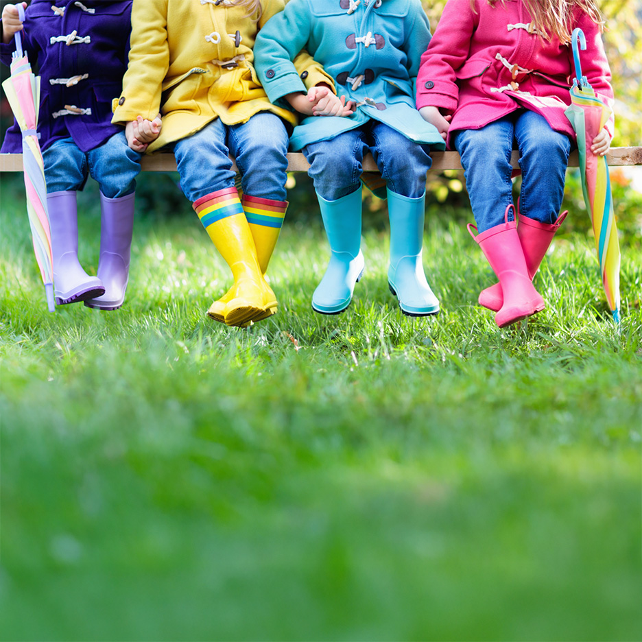 Com o equipamento correto, como as calças de lama, calças de chuva, galochas e os brinquedos de exterior adequados, podes permitir que as crianças corram livremente e sem preocupações lá fora.